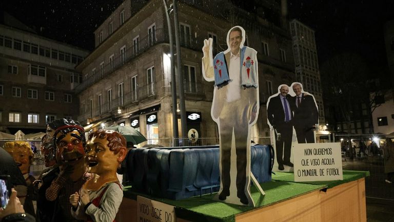 El meco está representado por un Caballero celtista confrontado a Rueda y Louzán, a los que acusa de no querer que la ciudad sea sede del campeonato